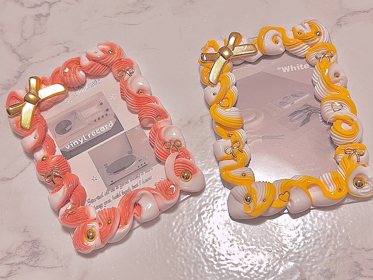 ♡ゴールドパーツ×ピンクのホイップデコです◡̈*.。カフェ活をはじめとした推し活におすすめのデザインです☆*。